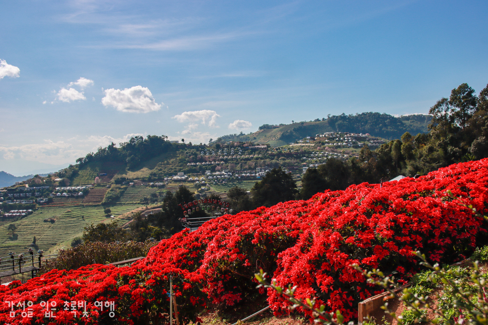 꽃뒤로 멀리 보이는, 텐트로 보이는 것들이 여기 고산지대(?)에 생긴 또다른 풍경이었다.